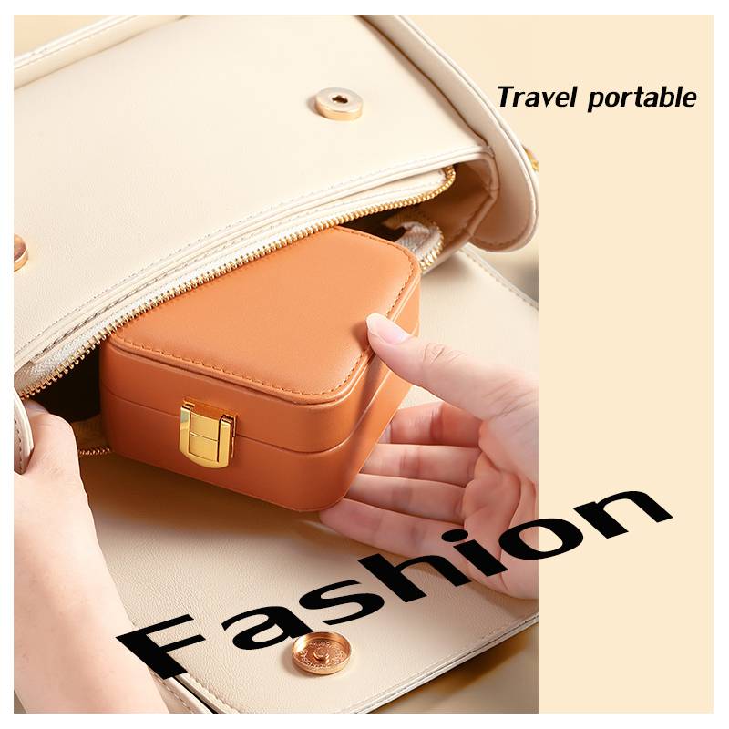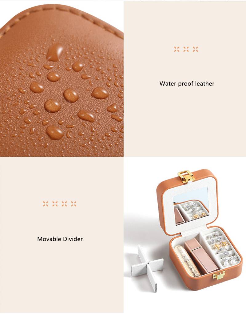 This jewelry box is made of leather material with a metal lock design for security. It can be customized in size and color as well as logo